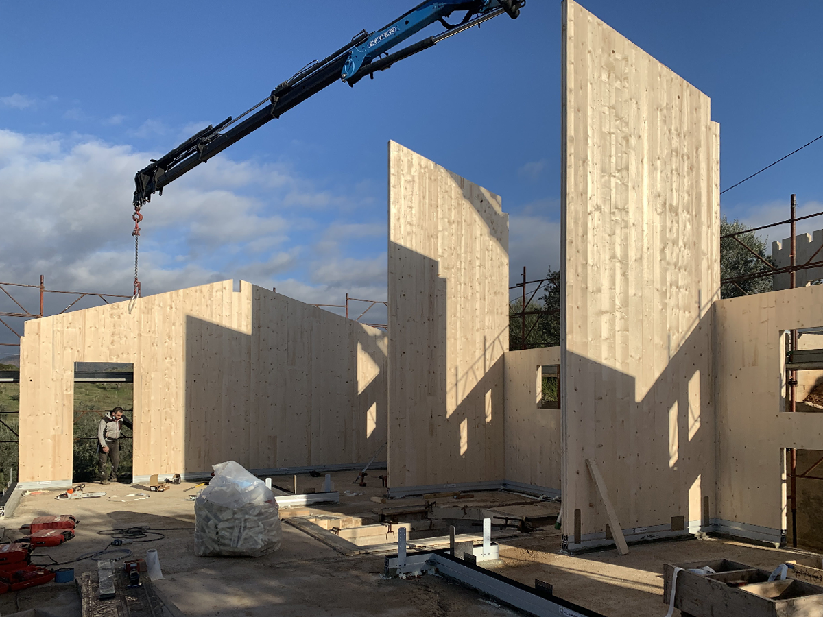Il progetto parte dal piano di migliormanto agricolo nel 2017 che oltre alla gestione delle colture agricole, definisce degli interventi edilizi necessari a migliorare le condizioni di vita e di lavoro dell’imprenditore agricolo. Nasce quindi un piccolo edificio su tre livelli a destinazione agricola. Il magazzino nella parte interrata in cemento armato e la residenza dell’imprenditore agricolo nei duel ivelli superiori realizzati con tecnologia Xlam.