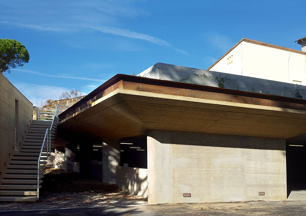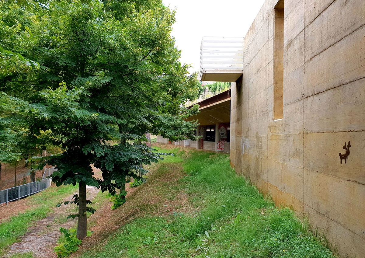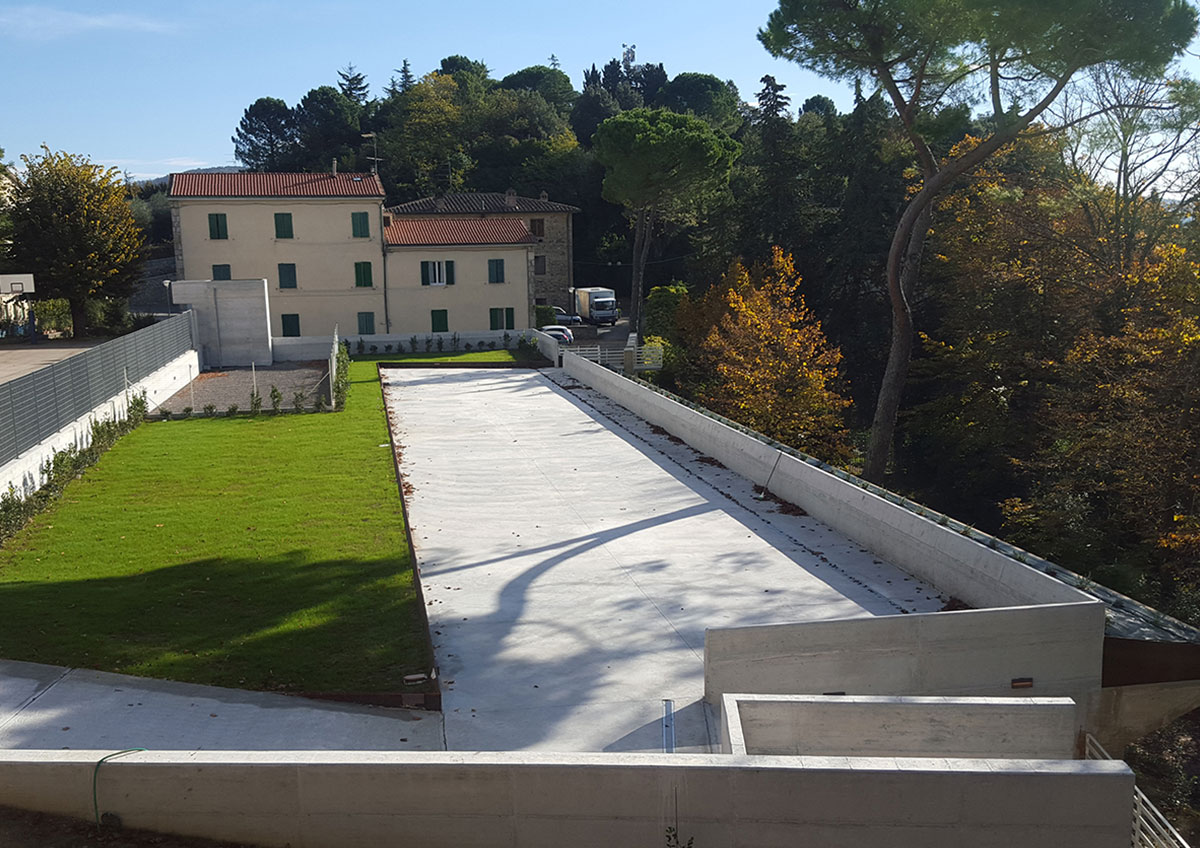 Il progetto ha trasformato il retro dell’edificio scolastico, in un fronte urbano aperto verso il Parco, che dialoga con il paesaggio invece di voltargli le spalle. Grazie a un sistema integrato di terrazzamenti verdi, sfruttando le strutture del parcheggio semi-interrato si potranno integrare